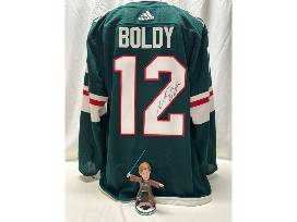 Bid now on this new, unworn Adidas Authentic size 54 Matt Boldy 2023-24 Jersey, signed by #12 himself. Comes with an autographed Matt Boldy "Boldy-Wan Kenobi" Bobblehead, created for the March 3, 2024 Minnesota Wild Star Warms theme night. Certificates of Authenticity available upon request.