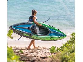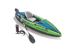 The Intex Challenger K1 Kayak is sporty and fun with a streamlined design for easy paddling. The bright green color and sporty graphics make the kayak highly visible in the water. Great for experiencing lakes and mild rivers solo, this Sports Series kayak is perfect for one adult. Lightweight and compact, this kayak is very easy to assemble and, with the Boston valve, it inflates and deflates in minutes. You can take the fun of kayaking wherever you go.
