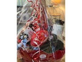 Included with the tickets is a basket of assorted Chick-fil-A swag and merchandise.