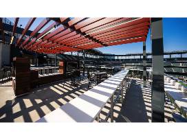 - Mix of mesh seating, highboys, and standing room in each patio