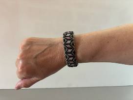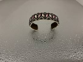 Beautiful beaded bracelet featuring a pink, black and red beaded pattern.