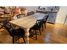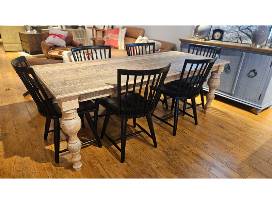 Rustic Wood Dining Table with 6 Black Chairs