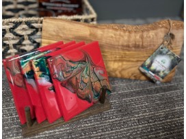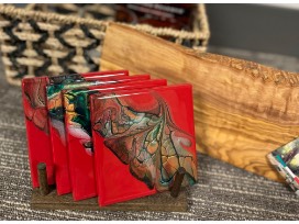 - A specially crafted set of four red marble hand made coasters with a wooden holder, adding a touch of elegance to your whiskey-drinking experience.