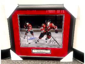 Skate into Chicago Blackhawks history with this stunning custom framed and matted 11"x14" photo signed by Patrick Kane and Jonathan Toews! This dynamic duo is at the heart of Chicago's hockey dynasty, defining an era of excellence on the ice. Score this iconic piece of history, perfect for any fan! Certificate of Authenticity included.