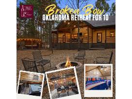 2BROKEN BOW (OK) RETREAT FOR UP TO 10 (4 Nights) - Enjoy 4 nights immersed in the stunning nature of Broken Bow with a stay in a gorgeous wood cabin surrounded by forest. Discover the great outdoors with a 4-hour pontoon ride to explore the beauty of the scenic state park. Rest and recharge your senses or ask your concierge to help you plan an action-packed adventure; the choice is yours.