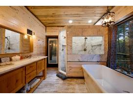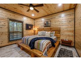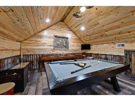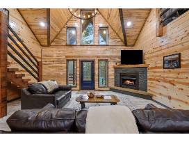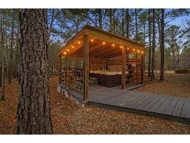 Tucked into 1,000 acres of untouched forest, your 3 bedroom retreat features two stories and an open plan living area to accommodate large groups and bring guests together. Gather around the dining table or indoor fireplace to share good stories and great food, or relax outside on the back deck with covered hot tub, dining area, and a fire pit for s'mores. Then enjoy some friendly competition in the game room with Retro Video Arcade, shuffleboard, and pool table.