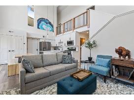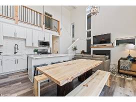 Double height ceilings and towering windows flood your home with natural light, immersing you in breathtaking views of Big Mountain throughout. A stunning central fireplace grounds open concept living while three inviting bedrooms offer a cozy haven come nightfall - each accompanied by sleek en-suite bathrooms worthy of true relaxation.