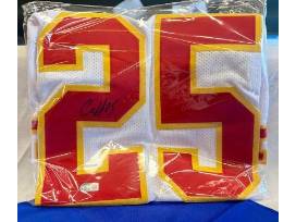 This authentic Kansas City Chiefs jersey is signed by running back Clyde Edwards-Helaire who recently re-signed to join the Chiefs again in the fall for his fifth season.