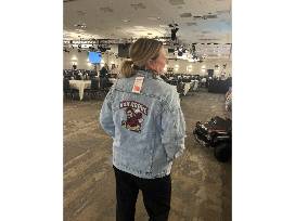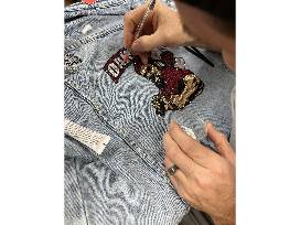 Sparkle with OG pride in this custom, hand-beaded, and bedazzled denim jacket by Jon Gabriel. Designed as 'one-size-fits-most,' this unique piece is ready to try on at this year's gala. Truly one of a kind-and you can make it yours with optional name personalization!