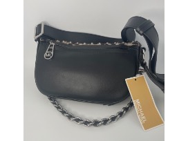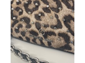 Dyed Hair calf leather sling pack with edgy chain trim.