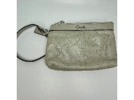 genuine Coach pearly white perforated leather wristlet pouch.