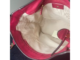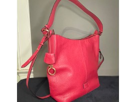 Beautiful raspberry pebbled leather. Large deep bag, plenty of room for everything!