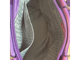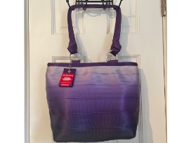 Gorgeous shades of purple, this is a zippered bucket tote.