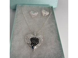 beautiful heat shaped silvertone pendant with matching earrings. Silvertone, high quality costume piece
