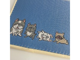 sweet little bulldogs adorn the bottom.