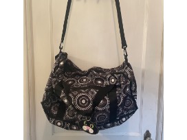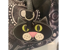lots of room for essentials. Attached zippered interior pouch . Cute cat luggage tag. Velcro exterior side pockets