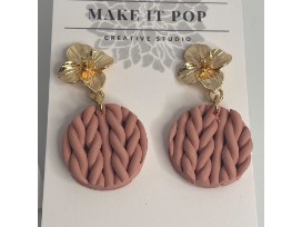 Dusty rose knitted polymer with floral post accent