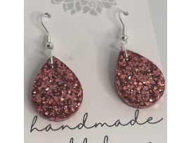 pink glitter epoxy teardrop on silvertone hooks