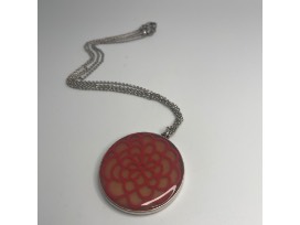 Acrylic rosetoned reversible pendant on double silver tone chain