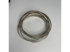 Silvertone metal bangles and turquoise colored bracelet. Really pretty for summertime