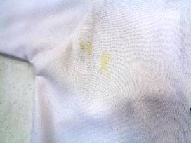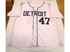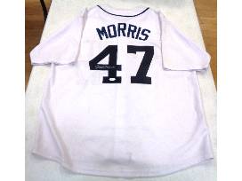 Jersey has pinholes from previously being framed and has several dirty spots on it.