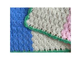 This afghan features a cheerful color palette that combines soft pinks, serene blues, and sunny yellows in a beautifully textured design. The contrasting hues and cozy knit create a warm and inviting feel, perfect for adding a splash of color and comfort to any space.
