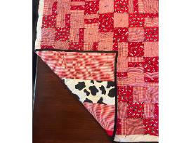With a playful, whimsical design of red and white patterns complemented by adorable cow and western motifs, this quilt is sure to add a fun, country-inspired touch to your home!