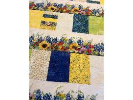 This quilt features intricate floral patterns in a rich palette of colors, capturing the essence of Texas's diverse and colorful flora. Each bloom is beautifully detailed against a complementary background, creating a warm and inviting design.