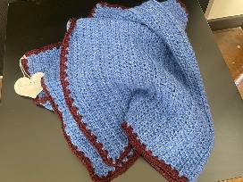 Take home this meticulously knit royal blue with maroon bordering throw blanket, hand made by Senora Vargas. Save for a cold winter night!