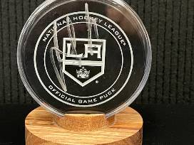 Jeff Carter signed Los Angeles Kings 100th anniversary official game puck. Carter was a first-round pick (No. 11) of the Philadelphia Flyers in the 2003 NHL Draft. Carter used his strong skating ability and a powerful, accurate shot to become a feared scorer. Carter's eight goals for Los Angeles during the 2012 Stanley Cup Playoffs helped the Kings win their first championship and tied him for the NHL lead. After finishing fourth in the League with 26 goals during the lockout-shortened 2012-13 season, Carter was second on the Kings with 10 goals and 25 points in the 2014 playoffs as Los Angeles won its second title in three seasons. Carter also has had plenty of highlights in international play, including scoring three goals and five points in six games for Canada's gold medal-winning team at the 2014 Olympics.