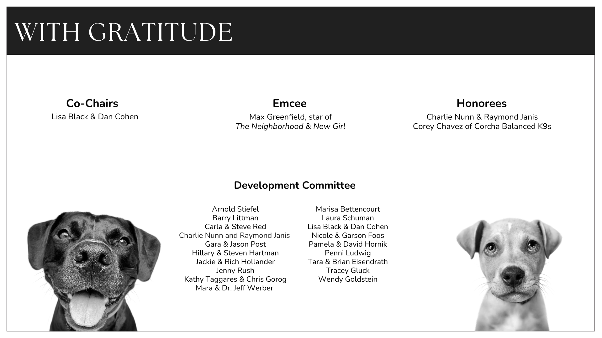All purchases & donations are nonrefundable. We are proud to share that 90 cents of every dollar raised at our gala goes directly toward our life-saving efforts.
