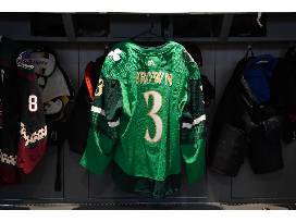 This jersey was issued for the Coyotes vs. NJD game on March 16th, 2024, and autographed by #3 Josh Brown.