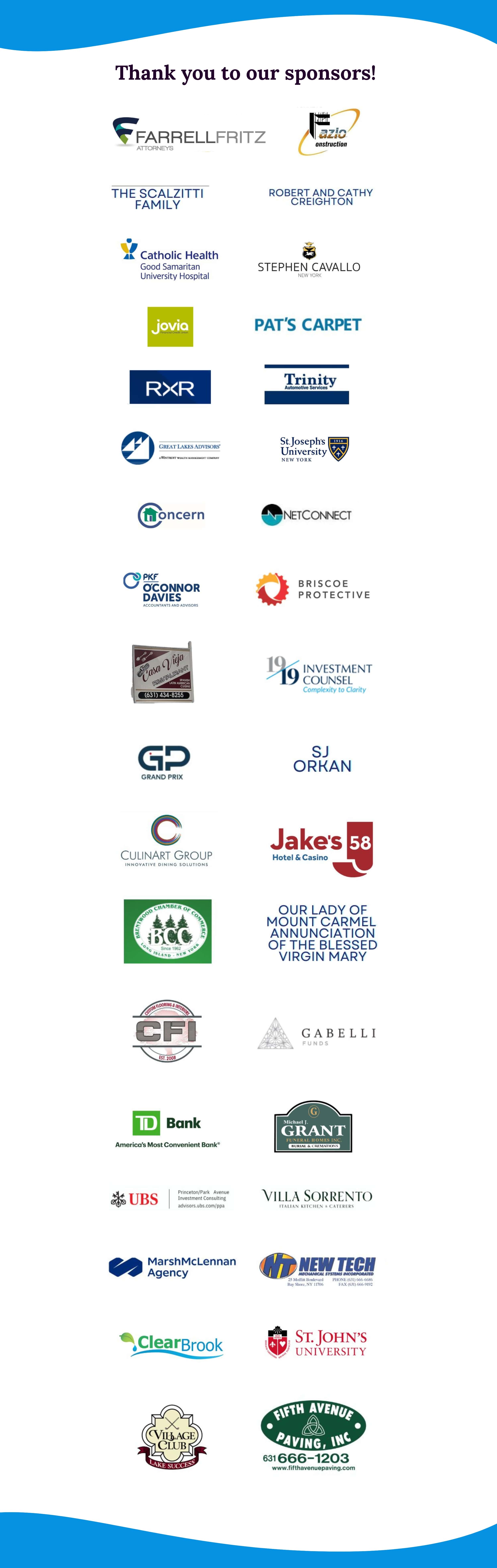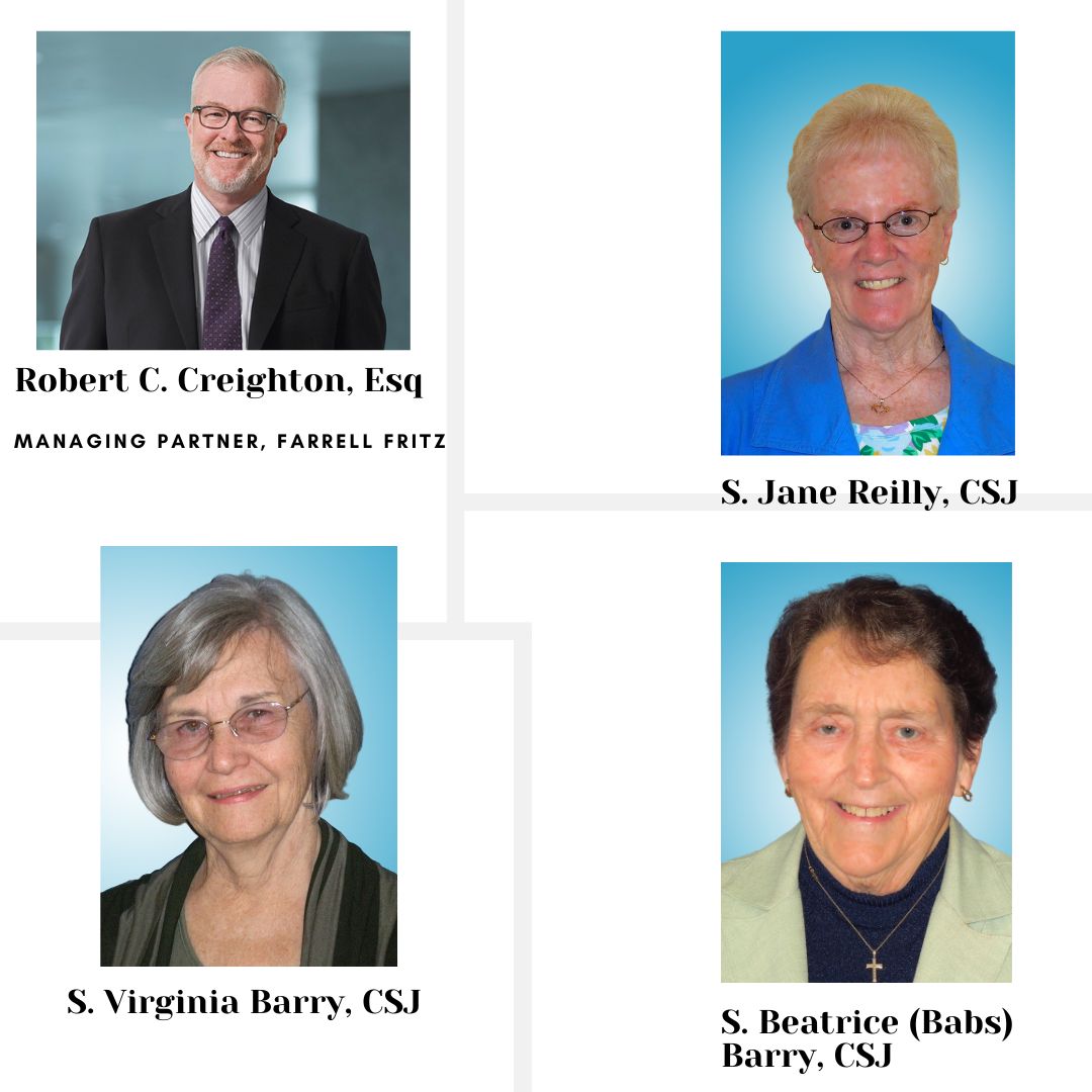 Gratitude to Farrell Fritz Attorneys, Fazio Construction, The Scalzitti Family, 2024 Honorees; Robert Creighton, S. Jane Reilly, CSJ, S. Virginia Barry, CSJ and S. Beatrice (Babs) Barry, CSJ, our Volunteer Golf Committee, our spirited golfers and all our journal and golf sponsors!