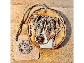 Custom Wood Burned Pet Portrait + 2 Ornaments