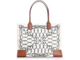 Tory Burch Ella Printed Nylon bag in Ivory with Abstract Rope pattern.