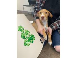 This one-of-a-kind painting was "painted" (Paw Printed) by none other than our beautiful pup, Sue!