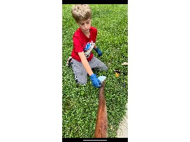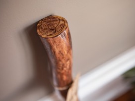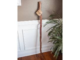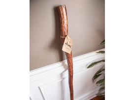 This hiking stick was handmade with care by a 10 year old boy, Simon. It is made from a hand sawn tree trunk that dried for several months without the bark. He then stained and sealed it.