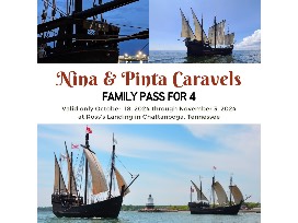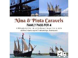 4 Tickets to visit the Nina and Pinta replica Ships docked at Ross Landing in Chattanooga from October 18- November 3 Available for Shipping