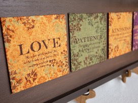 Handmade 31.5 in x 12 in wall art displaying Love, Patience, Kindness, and Goodness Local Pickup Only