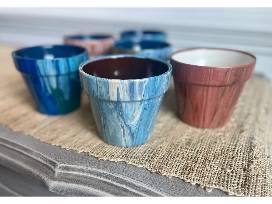 3Pour-painted, marbled terracotta pot, painted by the SSET kids.