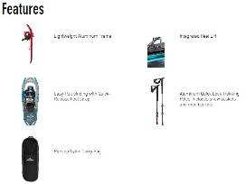 Includes snowshoes, poles, and carry bags