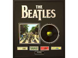 The Official Record Album Cover of "Abbey Road" - Autographed by Paul McCartney and Ringo Starr, The "Abbey Road" Official Vinyl Record Album, 4 Official Full Unused Replica Beatles Concert Tickets from September 3, 1964 - State Fairgrounds, Indianapolis, IN, August 15, 1965 - Shea Stadium, Flushing, NY, August 15, 1966 - D.C Stadium, Washington, DC and August 21, 1966 - Bush Memorial Stadium, St. Louis, MO and custom engraved nameplate - museum quality. - All items in this display including the frame, album cover, record, tickets, autographs etc. all grade a 10. Gem Mint!