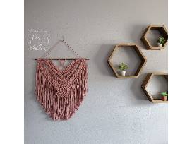 Handmade boho macrame wall art by Jessica (The Traveling Gypsies), "Pink Lotus", recycled cotton cord 28"x19". FMV $132.