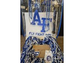 Air Force- clear tote bag, 4 lanyard compass bracelets, 2 phone holders, necklaces, pom-poms and stickers. $50 Dicks Sporting Goods gift card.