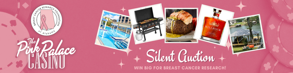 All Pink Palace Casino Night ticket sales and auction proceeds benefit the Breast Cancer Research Foundation of Alabama (BCRFA).