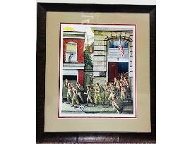 Norman Rockwell (1894 to 1978) Scouting is Outing, 1968 Calendar Illustration for the Boy Scouts of America for Brown & Bigelow Co. 1968 Media print lithograph on paperThis limited edition offset print is an image rendered by Norman Rockwell entitled Scouting is Outing was the 1968 calendar illustration for the Boy Scouts of America. The print has rich vibrant colors with a white border in excellent condition and has not been conserved. One the outstanding features of this print is in Norman Rockwell's eye for detail that engages the viewer. The print measures 14 X 11 inches and is hand signed by Norman Rockwell at the bottom in permanent marker.