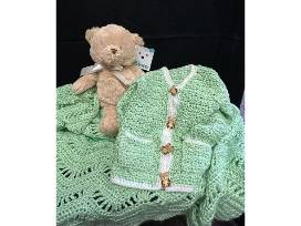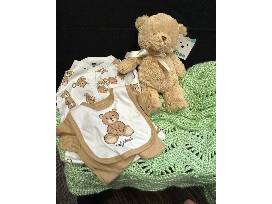 Handmade Baby Blanket, Outfit and matching stuffed bear
