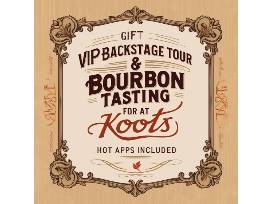 Take a VIP tour of Koots, along with a bourbon tasting for 6 people. Hot appetizers are included