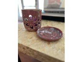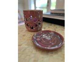 1Beautiful handmade ceramic candle votive and plate. The votive fits a candle the size of a wine bottle!