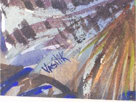 1Original Watercolor "Coconut Island" by Ann Vasiliki, a well-known painter, now retired. Framed approx. 35" x 39 1/2".